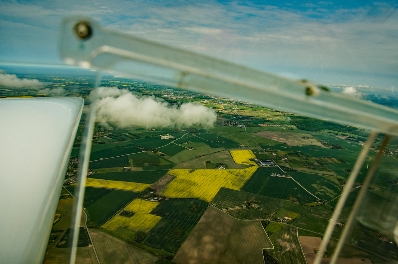 Under flyvningen sidder du med Danmarks bedste udsigt i et af vores tosædede fly, med en erfaren pilot ved roret.