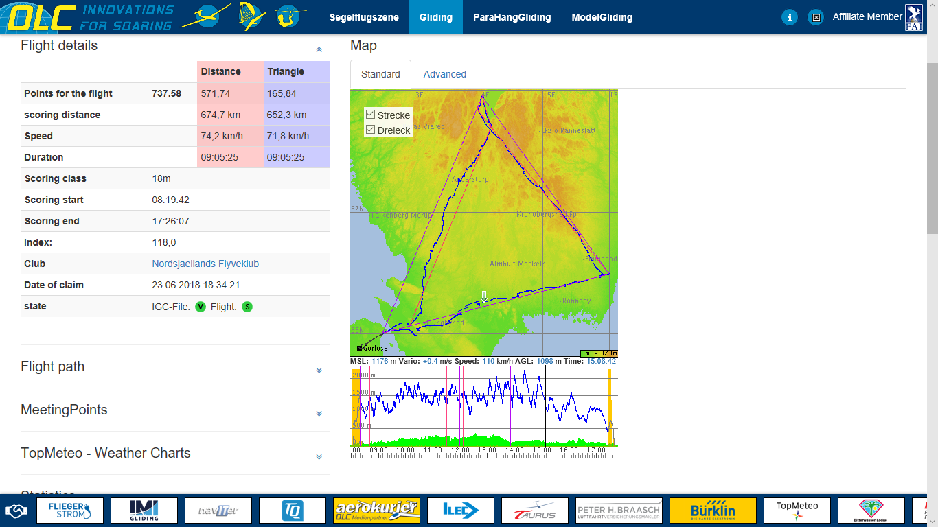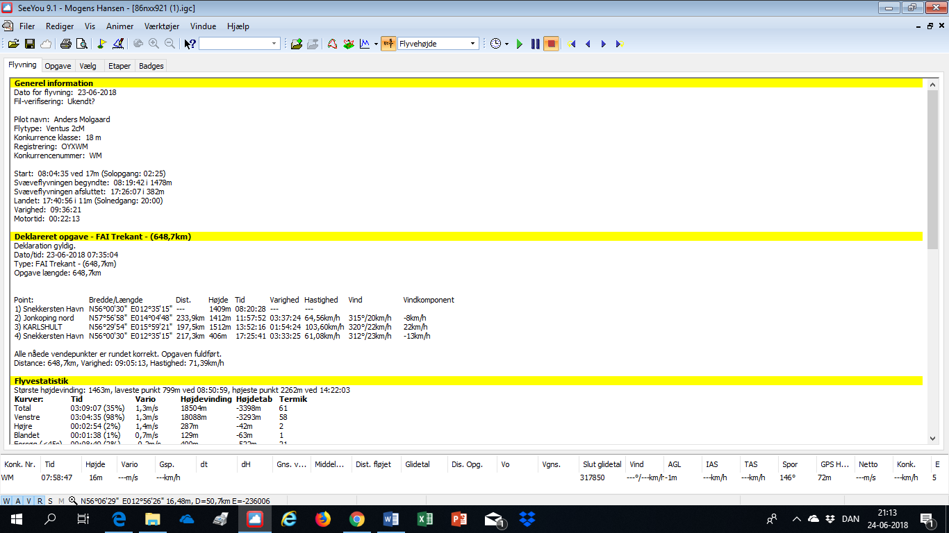 Jeg har i dag fløjet en 650,7 km FAI trekant i min Ventus 2cM.