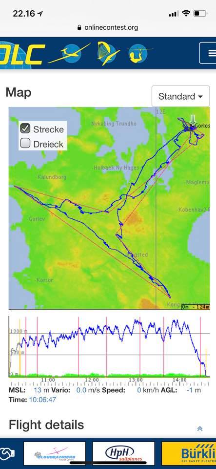 Det burde kunne give to to nye lokale rekorder i åben klasse: DC fri distance Trekant (FAI) og DG målflyvning Trekant (FAI).