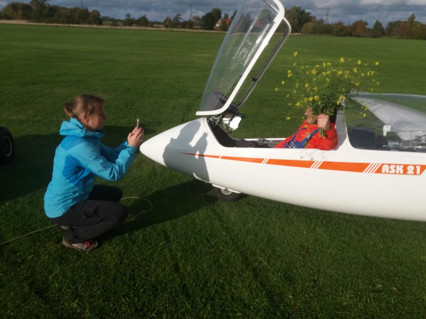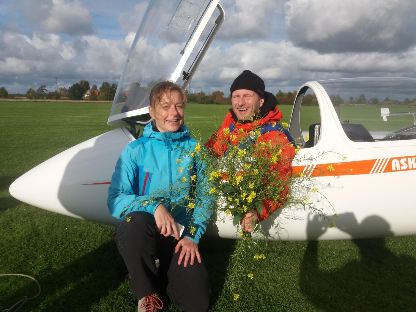Både Rikke og Phillip blev sendt solo på samme dag! Tænkt at starte på samme dag som svæveflyvere og gå solo samme dag.