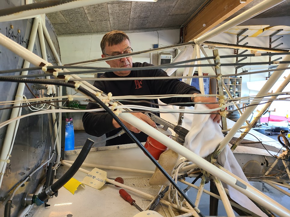 Erik og Thorkild, vores mekaniker fra EKKL med den rigtige underskrift, samt en svjser havde sat sig stævne i Pawnee Hangaren.