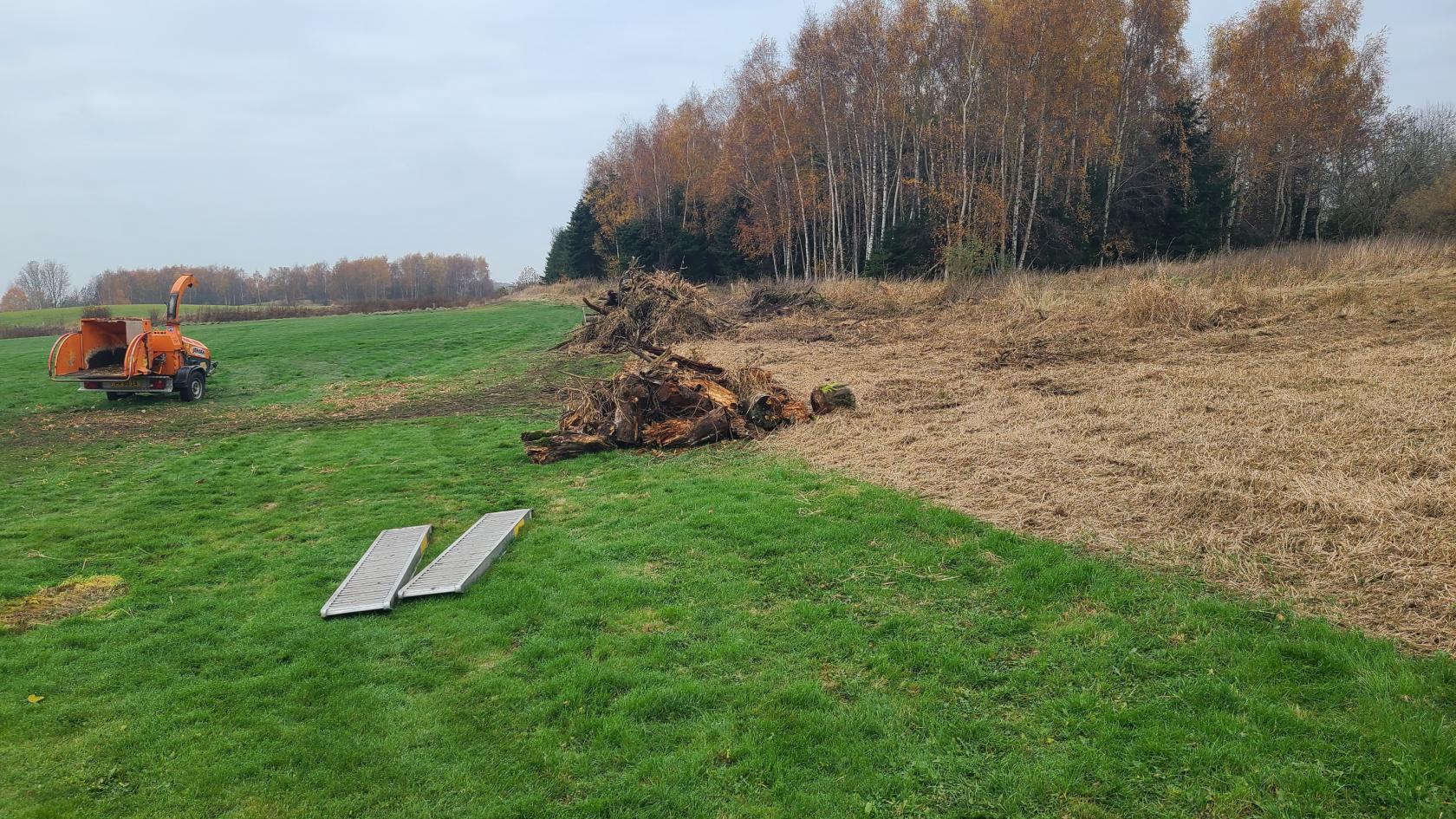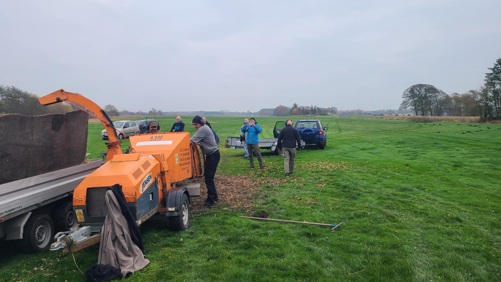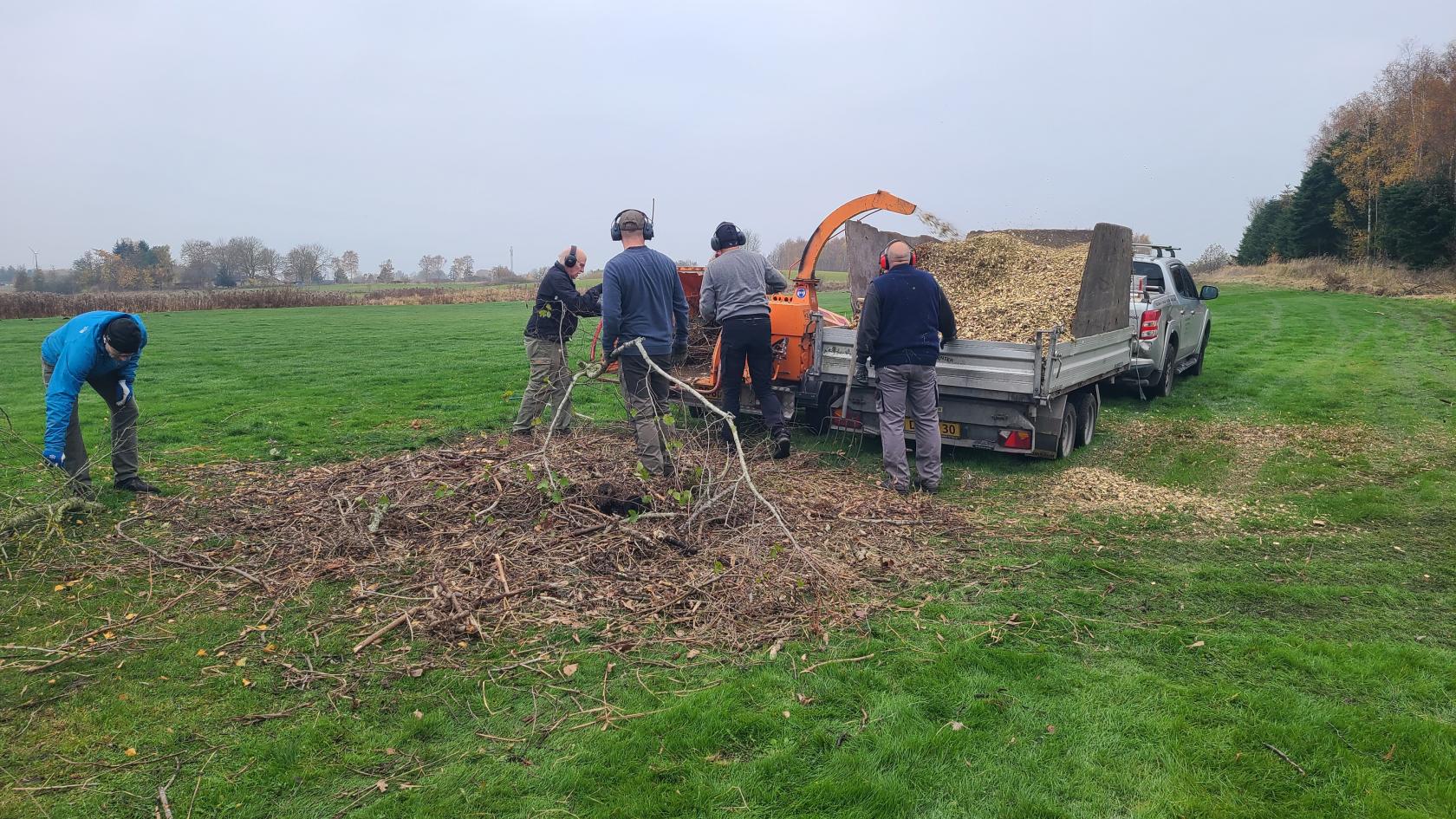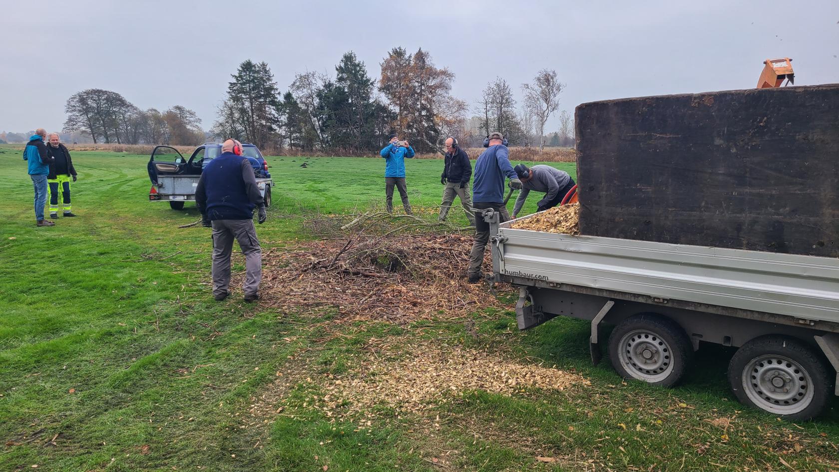 Der blev arbejdet godt og grundigt ved flishugger som var umættelig og leverede 4 trailerfulde flis.