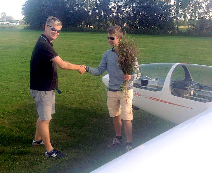 En glad elev og instruktør efter 1.soloflyvning
